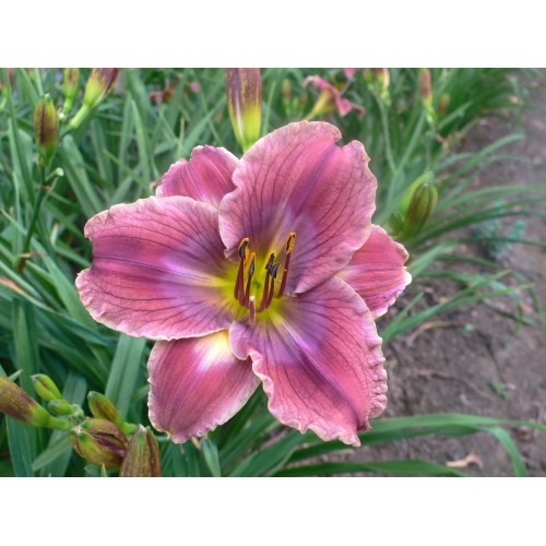The fascinating blooms of IF YOU KNEW BOB are veined blended dusty rose-lavender with a liquid violet-blue eye and ruffled lighter edge over a small yellow to green throat. This distinctive beauty has amazing plant habit with ample branching and an abundance of buds. Named to honor our friend Bob Faulkner, whose life was taken unexpectedly and whose memory lives on in our hearts and gardens. Both parents of this daylily were from Bob’s hybridizing program, which makes this one even more special!